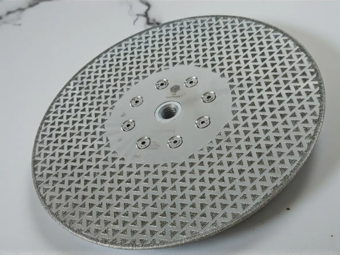 Kamenický diamantový galvanický řezný a brusný kotouč 230 mm s bočním brusným diamantem na kámen.