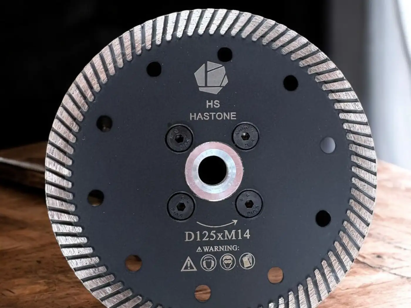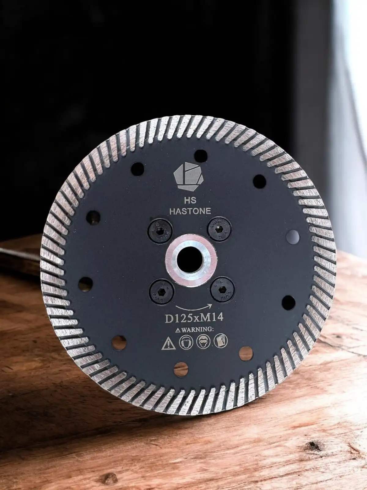 Kamenický univerzální diamantový kotouč určený pro řezání a broušení, vybavený přírubou a bočním brusným segmentem s diamantovým povrchem, ideální na opracování kamene.