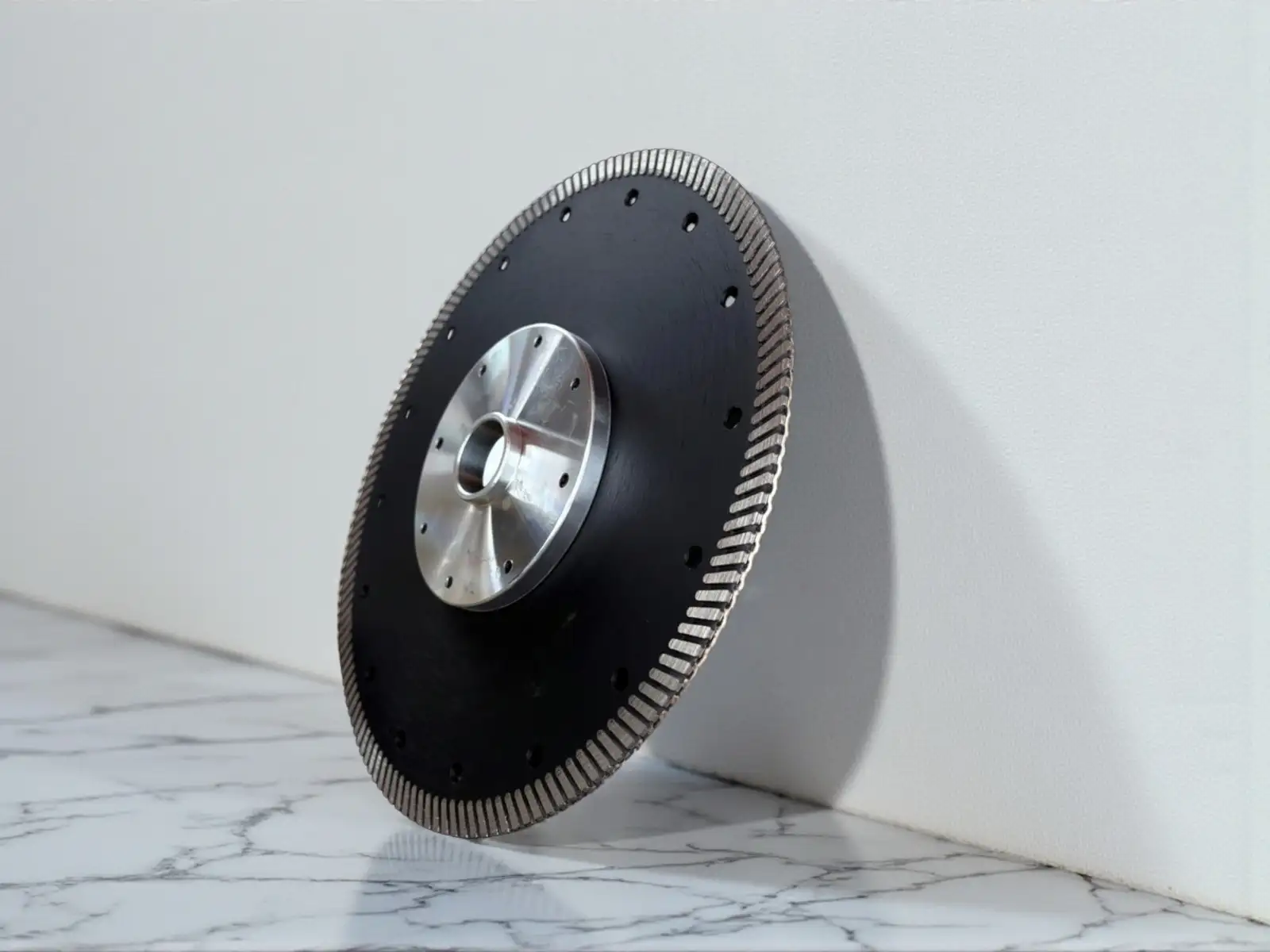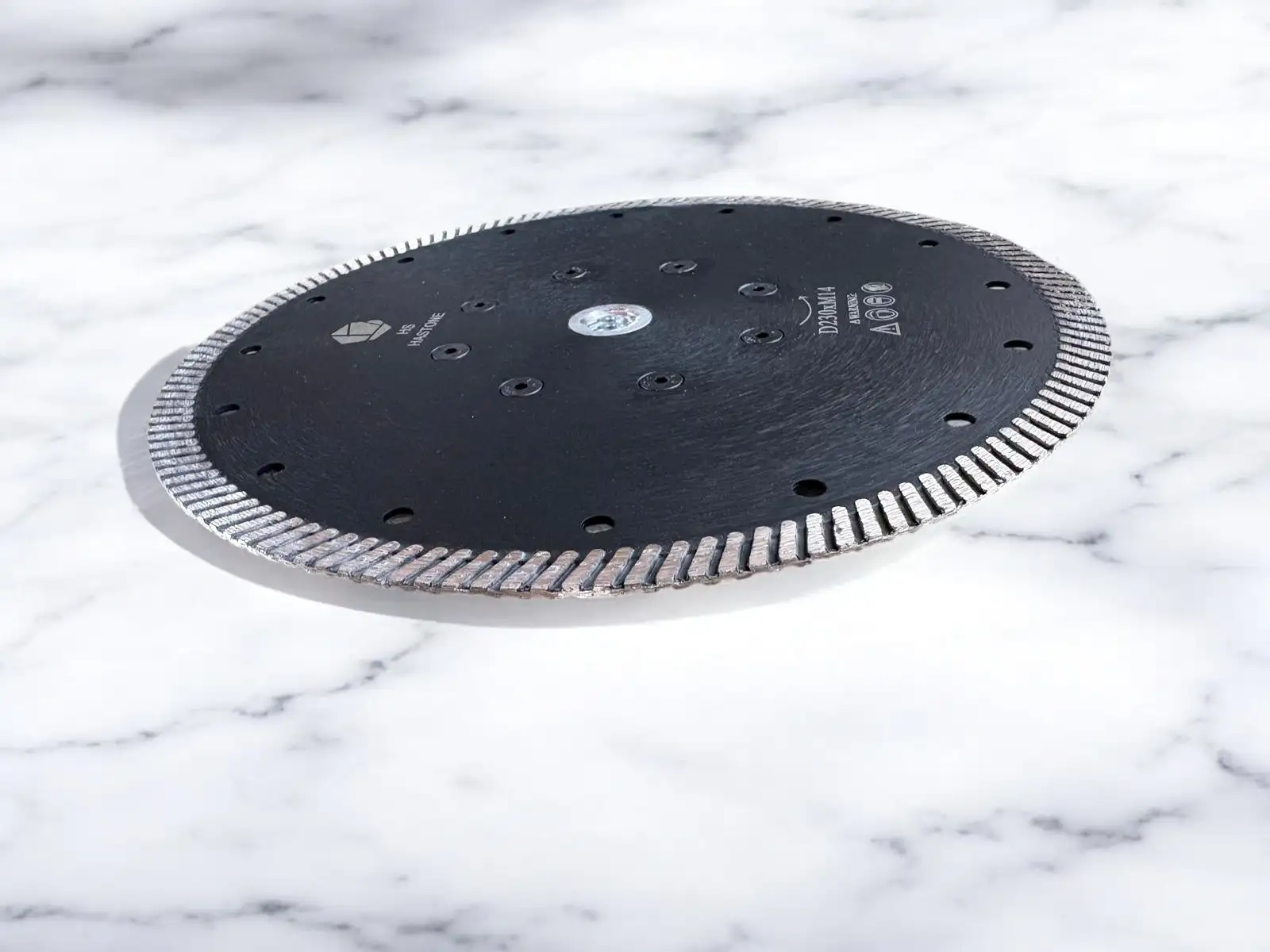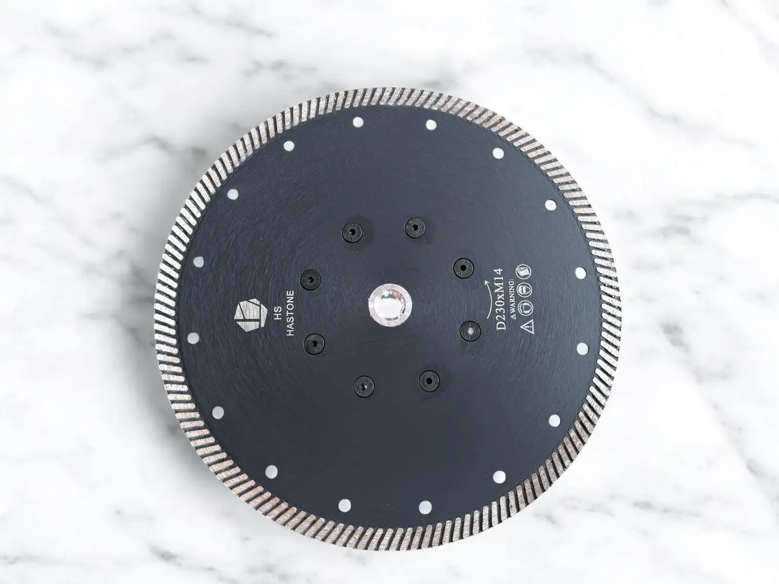 Kamenický univerzální diamantový kotouč určený pro řezání a broušení, vybavený přírubou a bočním brusným segmentem s diamantovým povrchem, ideální na opracování kamene.