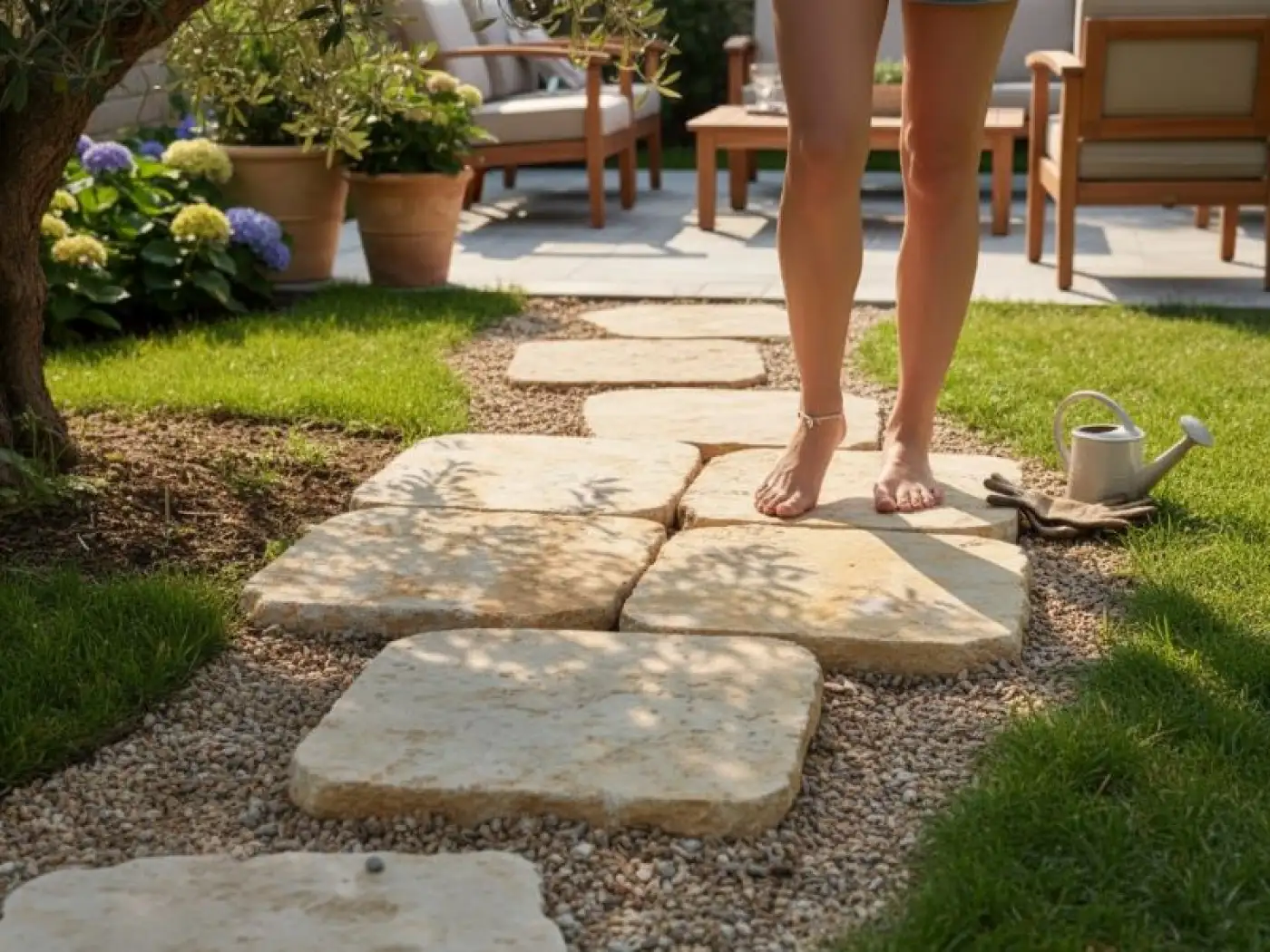 Šlapáky lze do zahrady pokládat samostatně i jako širší nekompaktní cestičku. Každý kus kamene je originál a ručně opracován tzv. prýskáním bočních stran, které mu dodají přírodní nádech. Spodní a vrchní (pochozí) strany dodávaného kamene jsou hladce řezané pro snadnější pokládku.