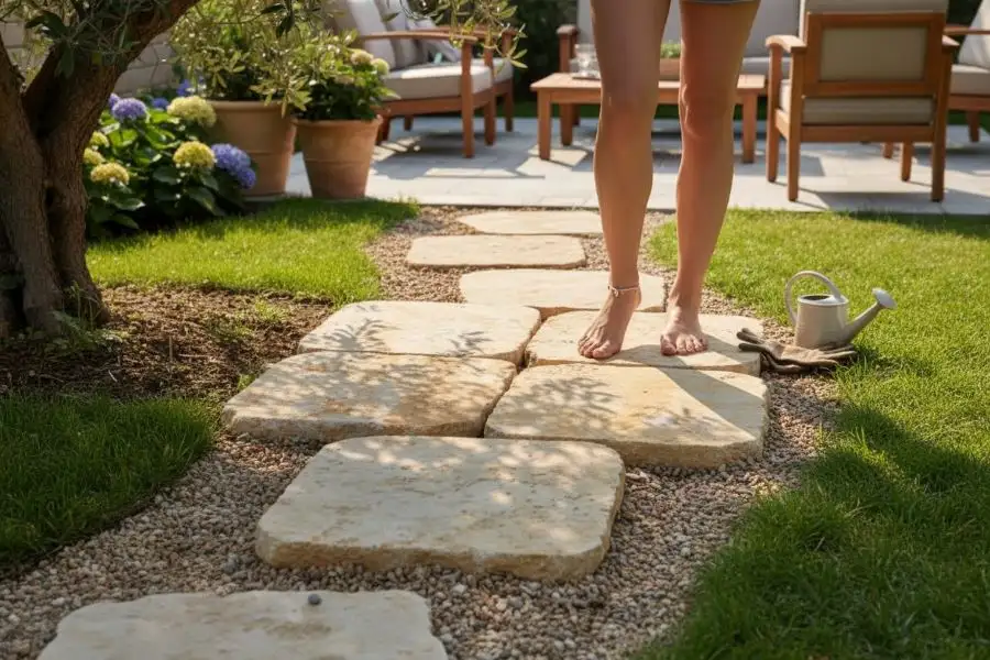 4. Do takto připravené plochy položíme kamenný nášlap a máme hotovo.