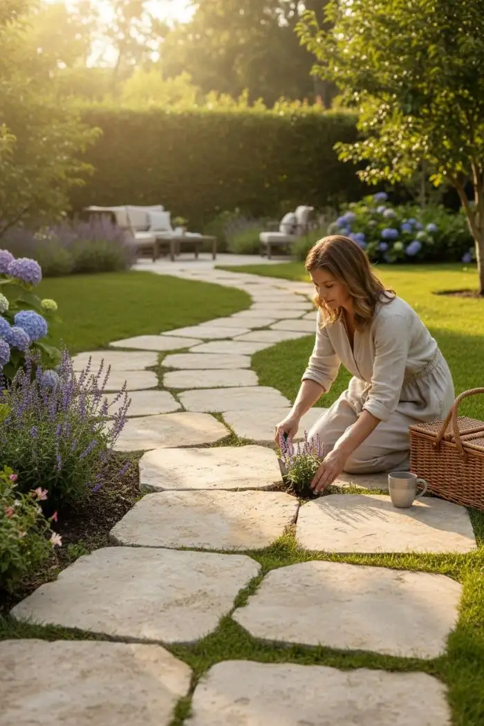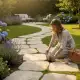 1. Kamenné nášlapy pokládáme tak, že zakoupený kus položíme na trávu a vyřežeme kolem něj do trávy obrys.