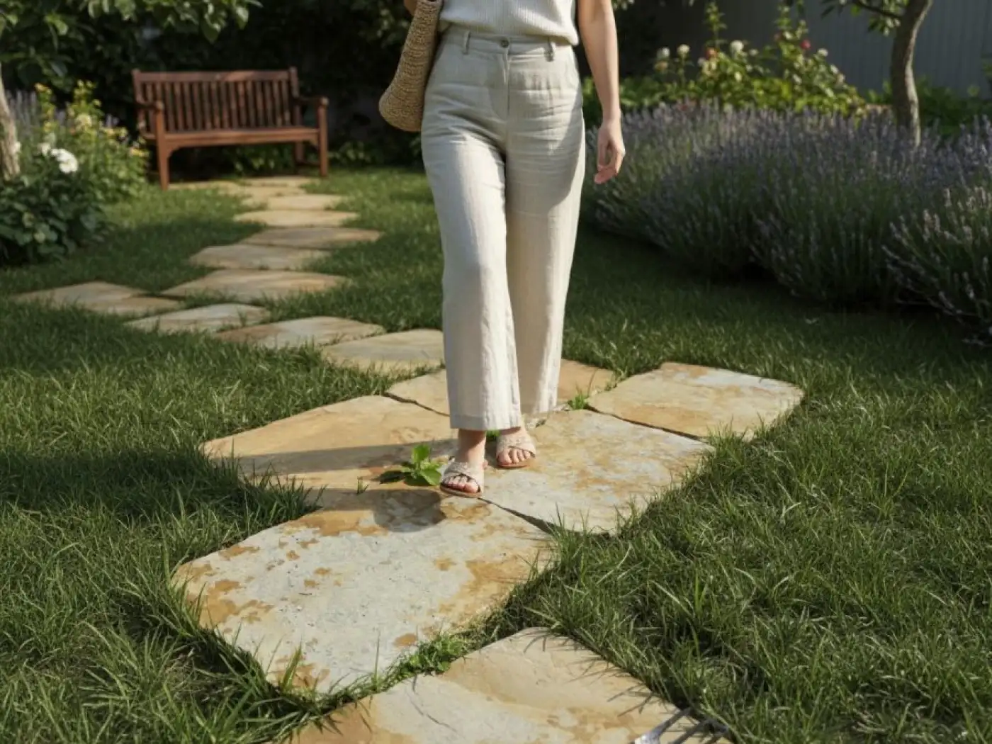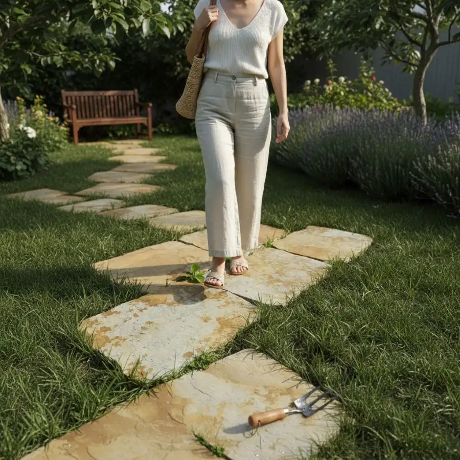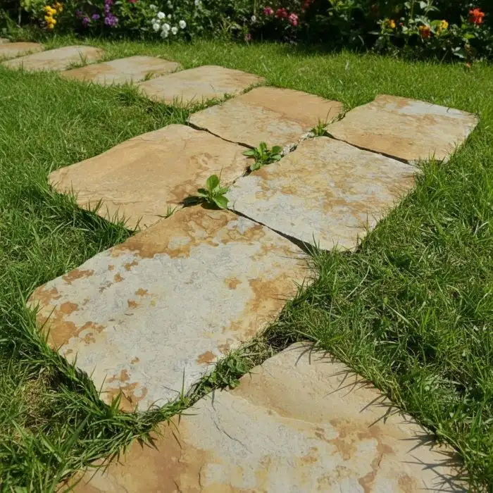 Šlapáky lze do zahrady pokládat samostatně i jako širší nekompaktní cestičku. Každý kus kamene je originál a ručně opracován tzv. prýskáním bočních stran, které mu dodají přírodní nádech. Spodní a vrchní (pochozí) strany dodávaného kamene jsou hladce řezané pro snadnější pokládku.