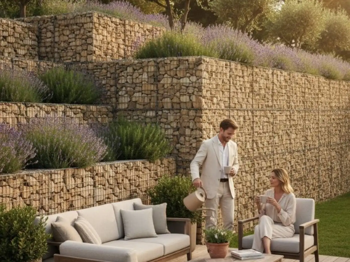 Gabionový koš je konstrukce složená z ocelové drátěné sítě, která vytváří pevný rám určený k naplnění různými materiály, nejčastěji kamenem. Lze použít pro stabilizaci svahů, zpevnění břehů vodních toků, jako opěrné zdi, protihlukové stěny, protipovodňové bariéry nebo jako dekorativní prvek v zahradní architektuře. Díky promyšlené kombinaci estetiky a funkčnosti představuje praktické a zároveň designově zajímavé řešení. Lze z nich sestavit moderní gabionové ploty, lavičky i stoly. K jejich montáži není obvykle potřeba speciální technika, což usnadňuje jejich použití při různorodých projektech.