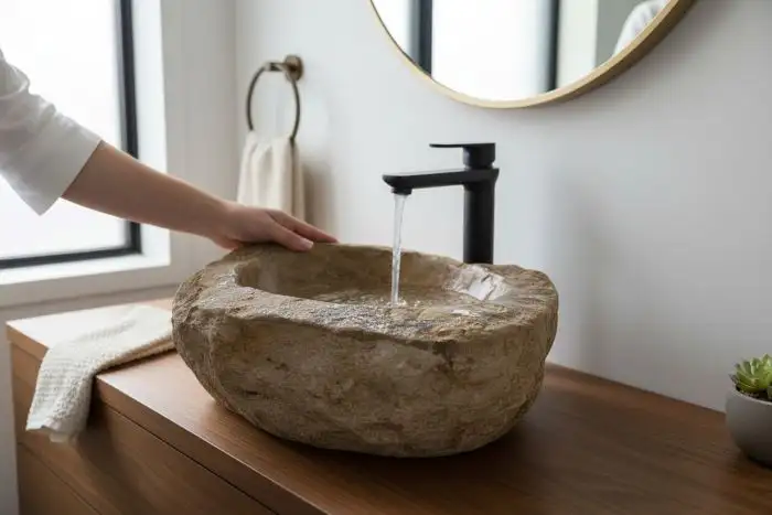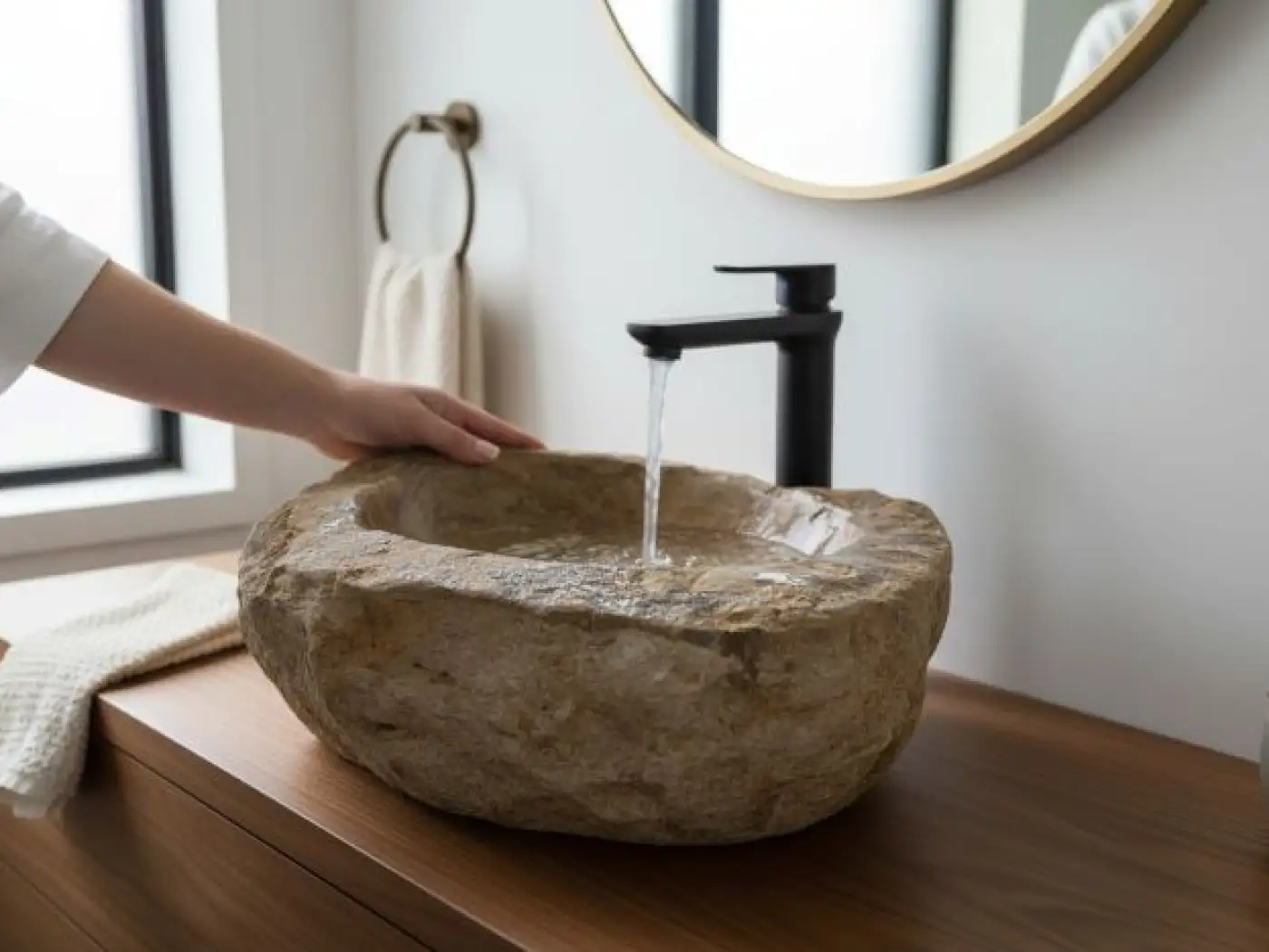 Každý kus je jedinečný – každý kámen má svůj vlastní tvar, barvu a hmotnost, což znamená, že žádná dvě umyvadla nejsou identická.