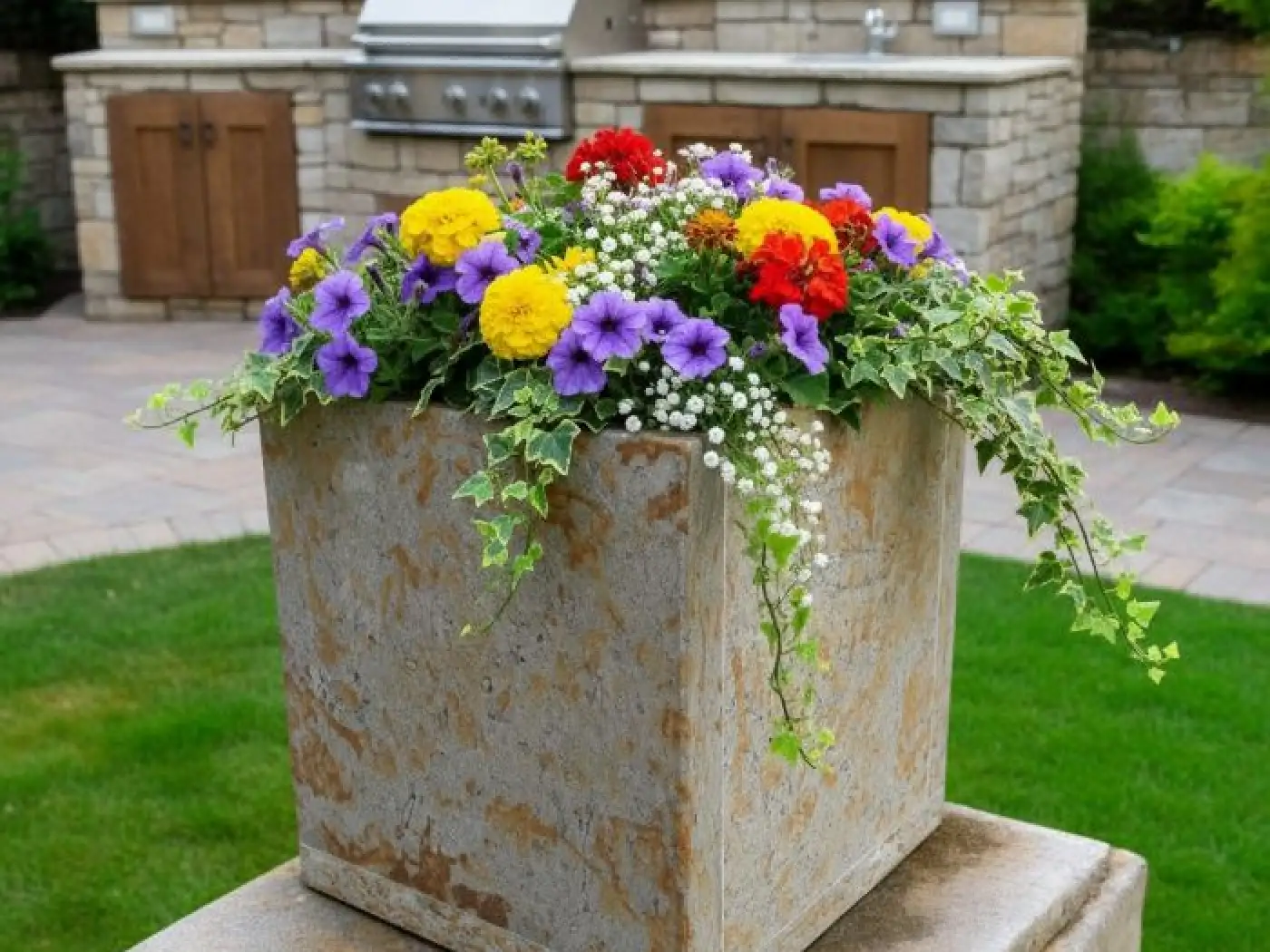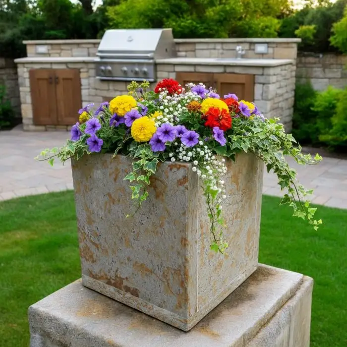 Kamenný květináč je ideální volbou pro výsadbu různých rostlin, včetně menších dřevin. Nejenže dokonale splní praktický účel, ale zároveň poslouží jako vkusná dekorace, která zkrášlí Vaši zahradu.
