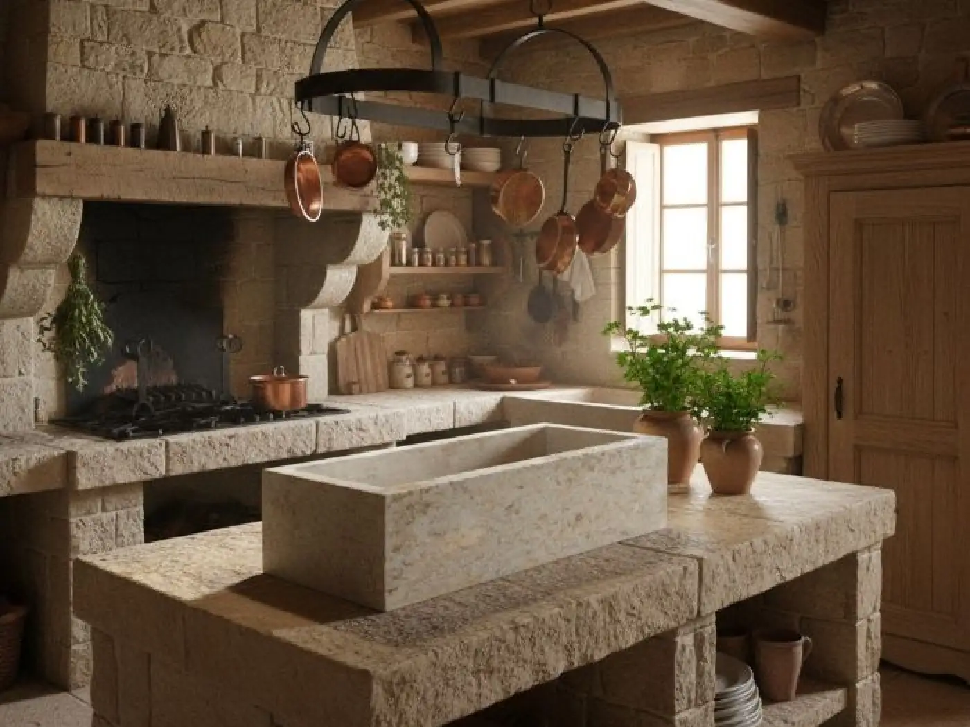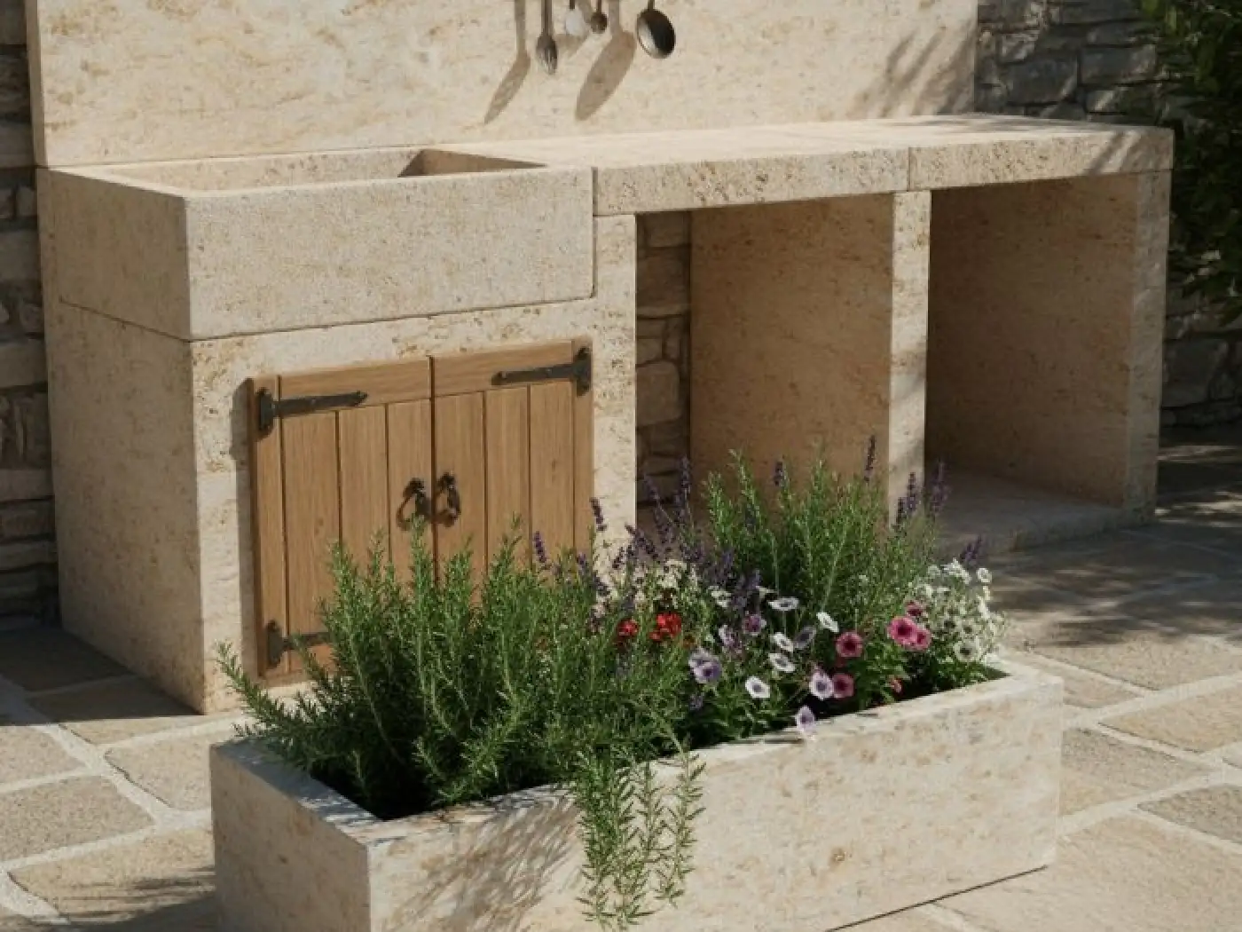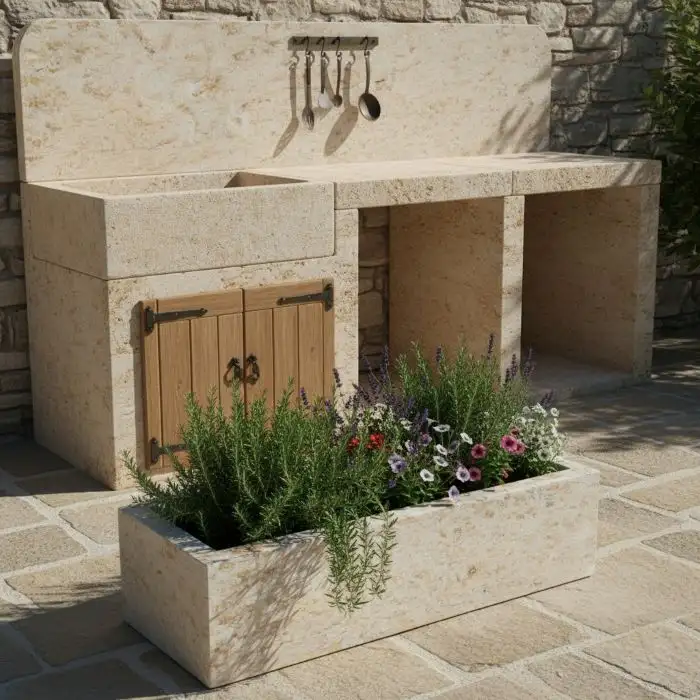 Pískovcový květináč je vyrobený z přírodního kamene.