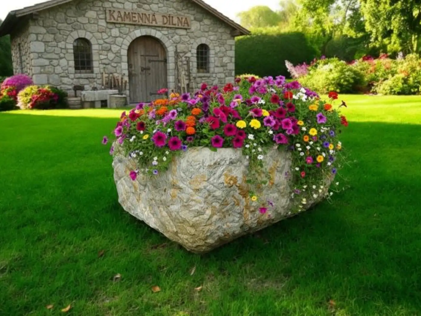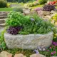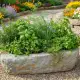 Zahradní květináč - koryto je vyrobené z přírodního kamene.